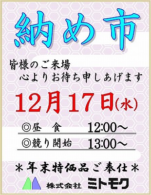 一年のご愛顧に感謝の気持ちを込めまして 特別ご奉仕品等多数取り揃え 皆様のご来場をお待ちしております |